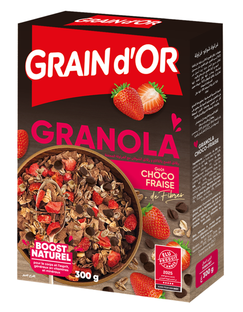 Le prix initial était : 4,80 €.3,99 €Le prix actuel est : 3,99 €.GRAINd’OR GRANOLA Choco Fraise 300 gr